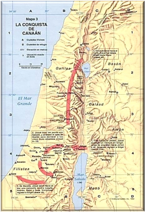 Israel por parte de Dios, se mantienen hasta hoy; basta que miremos los mapas en nuestras Biblias. Podemos ir a Josué 16. Según un mapa de la Biblia aramea, vemos allí los límites de Moab y los árabes al sur, de los amonitas y filisteos al oeste; y en el norte tenemos una parte de los fenicios, Siria, Babilonia y Persia. Todas naciones guerreras. Los ataques terroristas que sufren en Israel hoy en día son en su mayoría hacia los más expuestos descendientes de aquellas tribus.