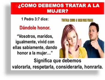 a Tercio, escribiente de la epístola a los Romanos, diciendo, en Romanos 9:21, que el alfarero (véase también Isaías 44.21) tiene potestad de crear —en obra de sus manos— de la misma masa un vaso de honra (véase también 2 Timoteo 2.20) y otro para deshonra. Hay un ejemplo muy hermoso que se encuentra en 1 Pedro 3.7, donde se compara a la mujer cristiana con un vaso muy frágil (lo leemos: “Vosotros maridos, semejantemente, habitad con ellas según ciencia, dando honor á la mujer como á vaso más frágil, y como á herederas juntamente de la gracia de la vida; para que vuestras oraciones no sean impedidas.”) Es nuestro deber como esposos —e inclusive cualquier varón, sin tener ningún parentesco con ellas— considerarlas y tratarlas de tal manera. Ellas son coherederas de la gracia.