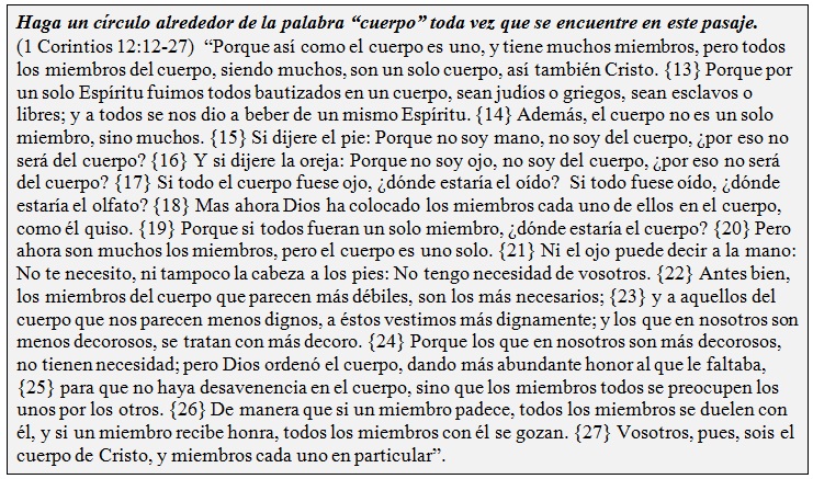 3. En I Corintios 12:27, ¿qué le llama Pablo a esta iglesia de Dios en Corinto? ________________________________________________________________