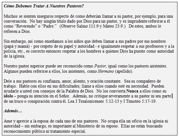3. Según I Pedro 5:2, ¿Qué es el deber de los Pastores? ______________________