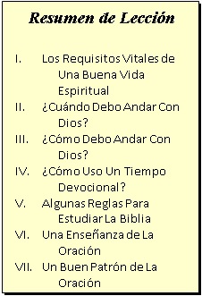B. Sin embargo, en nuestros horarios del día muy ocupados, es necesario para un Cristiano poner aparte un TIEMPO DEFINIDO CADA DÍA para un devocional (un momento de intimidad, de comunión) con el Señor.