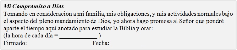 Ahora que ha reservado un tiempo definido para sus devocionales, recuerde que los buenos hábitos son difíciles para formar. Pida al Señor para que le ayude a guardar esta cita vital. Si falla, no deje de tratar, sino determine para empezar nuevamente.