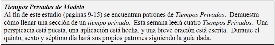 En su Tiempo Privado diario con el Señor, seguramente querrá orar. Una plena lección de la oración seguirá en un estudio futuro.