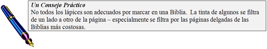 No todos los lápices son adecuados por marcar en una Biblia. La tinta de algunos se filtra de un lado a otro de la página – especialmente se filtra por las páginas delgadas de las Biblias más costosas.