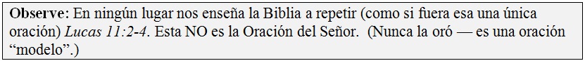 1. Busque Mateo 6:5-7. Usando sus propias palabras, afirme lo que no es oración verdadera. La oración no es __________________.